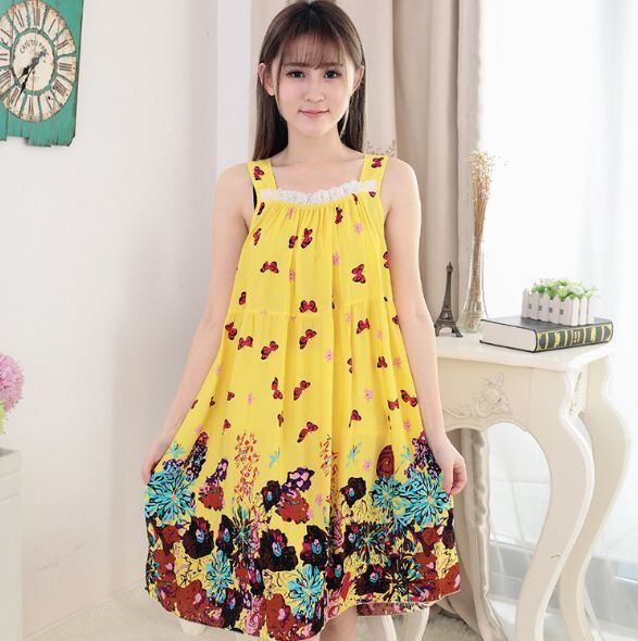 アジア風 エスニックなワンピース yellow かわいいお部屋着 ネグリジェ