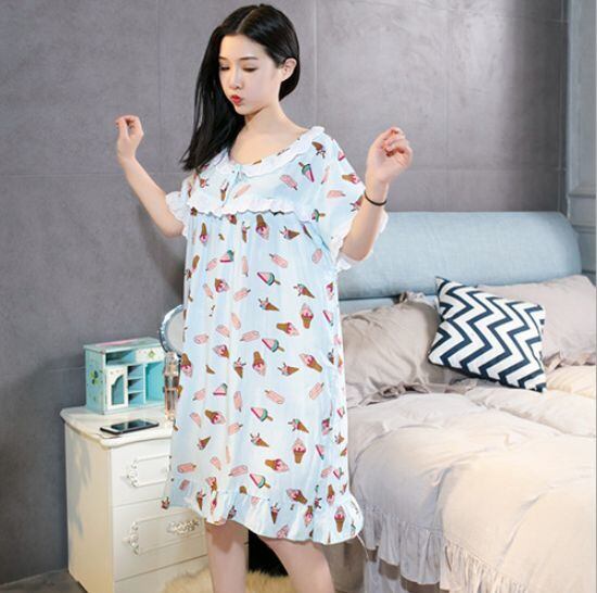 天然コットン 夏らしい柄 アイス スイカで夢見るブルー♪ ルームウェア ネグリジェ