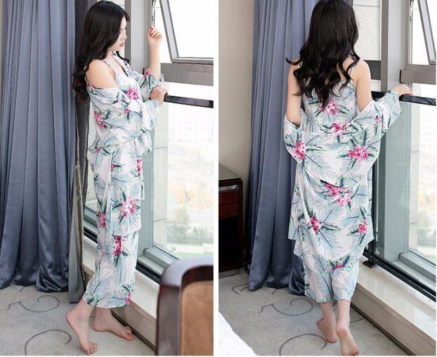 3点セット 花柄ホワイト リゾートウェア 大きいサイズ L XL ルームウェア パジャマ 部屋着